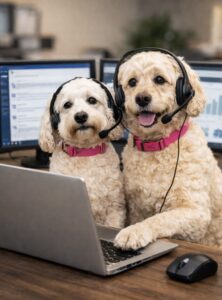 Thanks to some clever AI, we sat at desks, watched screens, answered phones, built robots, you would be amazed at our new found skills! We seem to have convinced everyone that we are professional working dogs and expect this to be recognised. Unfortunately, to date, we don’t appear to have received a payslip! Rosie has said she will take this up with The United Paws Federation and ask them to look into our “Paws and Conditions”. We did get lots of treats and cuddles though.