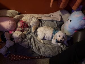 Thankfully, this did not impact the rest of the visit. Auntie Nikki’s house is very comfortable, and Looby Loo quickly confirmed that all sofas are shared spaces. We had lots of cuddles and even helped look after Adam who needed our support after the operation on his knee. Dog cuddles really are the answer to everything 😍